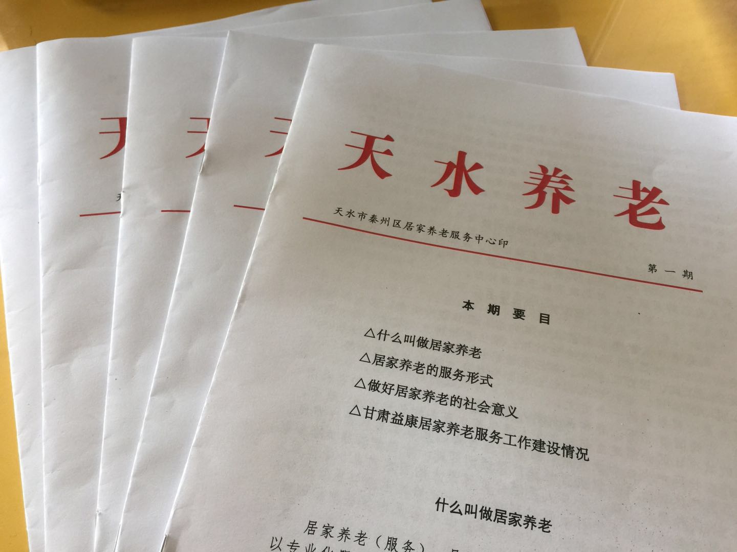 2018年4月,天水市秦州区居家养老服务中心正式印发“天水养老”月刊,本月刊将以“关注养老、关爱老人”为核心,积极推广养老惠民政策,让更多人了解天水市本地养老状况以及发展趋势,并参与其中,为天水市广大老年朋友提供更好的养老服务。