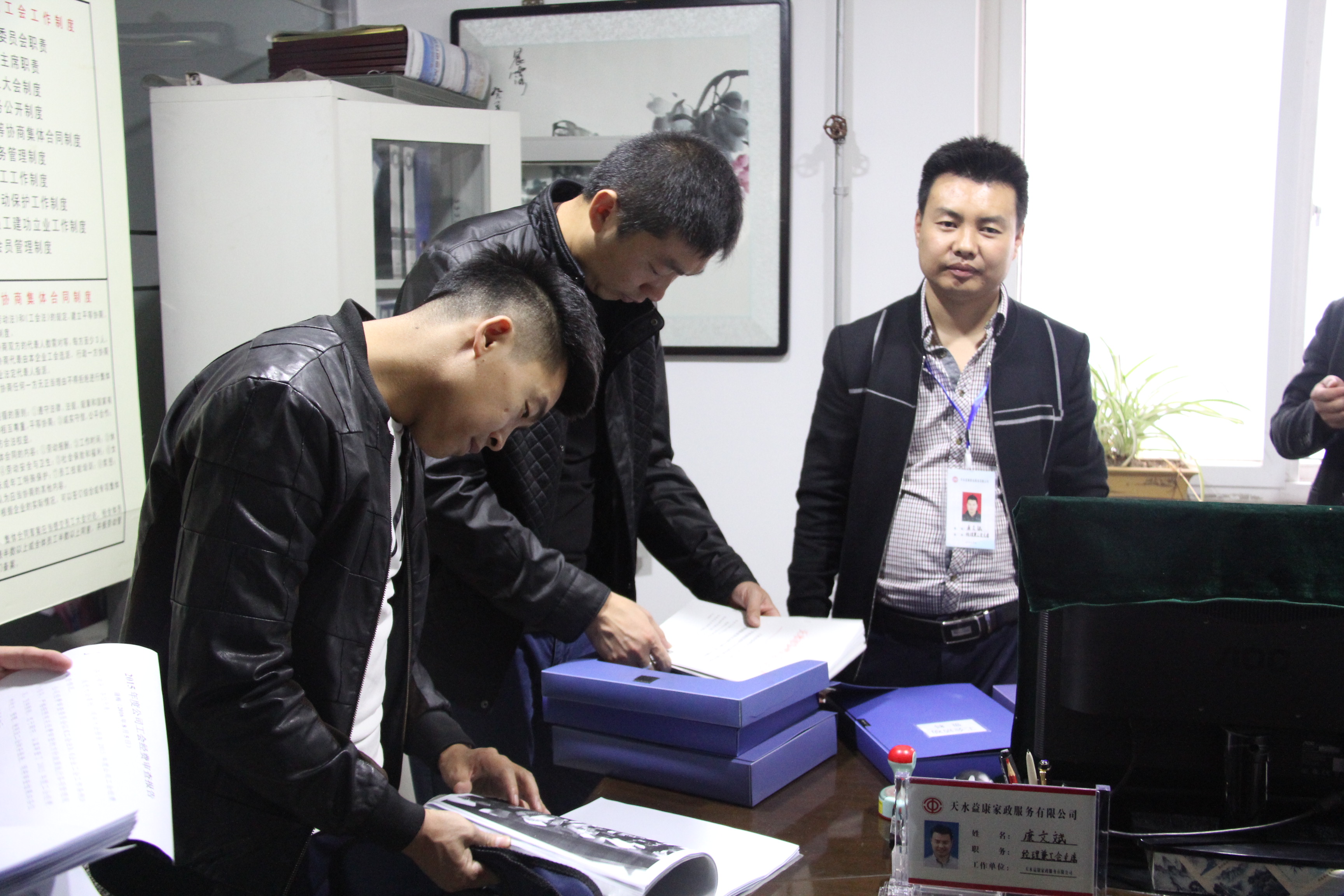 2016年10月20日下午,天水市工会组织部部长王芸、清水县工会孙副主席、甘谷县工会杨干事、以及秦州区工会主要领导一行莅临益康家政公司检查指导工作,在益康家政公司工会主席康文斌的陪同下,检查指导了我公司工会建设工作及工会文件资料。