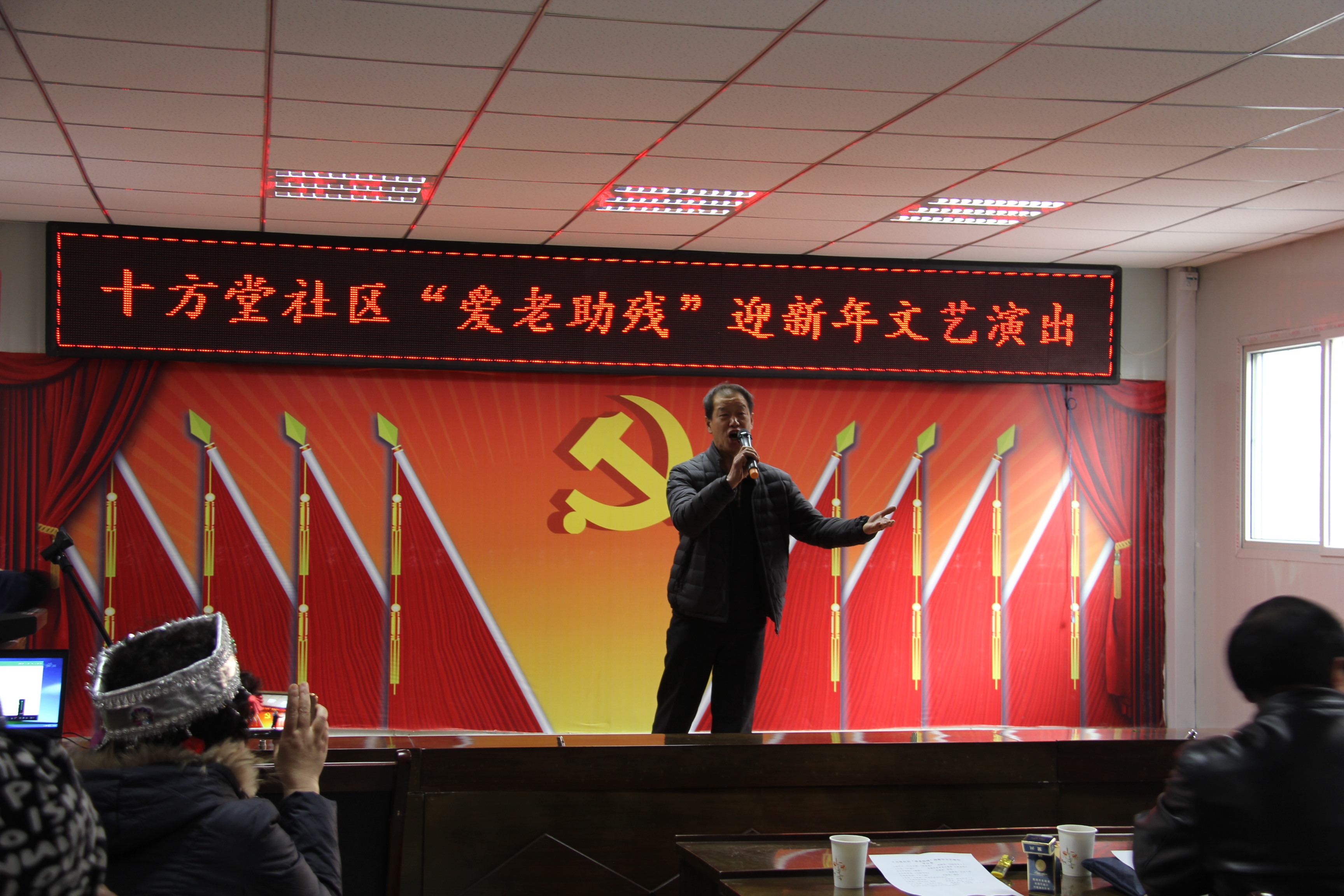 12月28日,益康家政居家养老和十方堂社区联合举办的“爱老助残”元旦文艺汇演在十方堂社区成功演出。表演者有社区干部、秦州区居家养老服务中心工作人员、益康居家养老志愿者以及社区老年人。其中由益康居家养老志愿者王春甫老人编排的小品《关爱》,其真实、生动的表演形式倍受观众的喜爱。